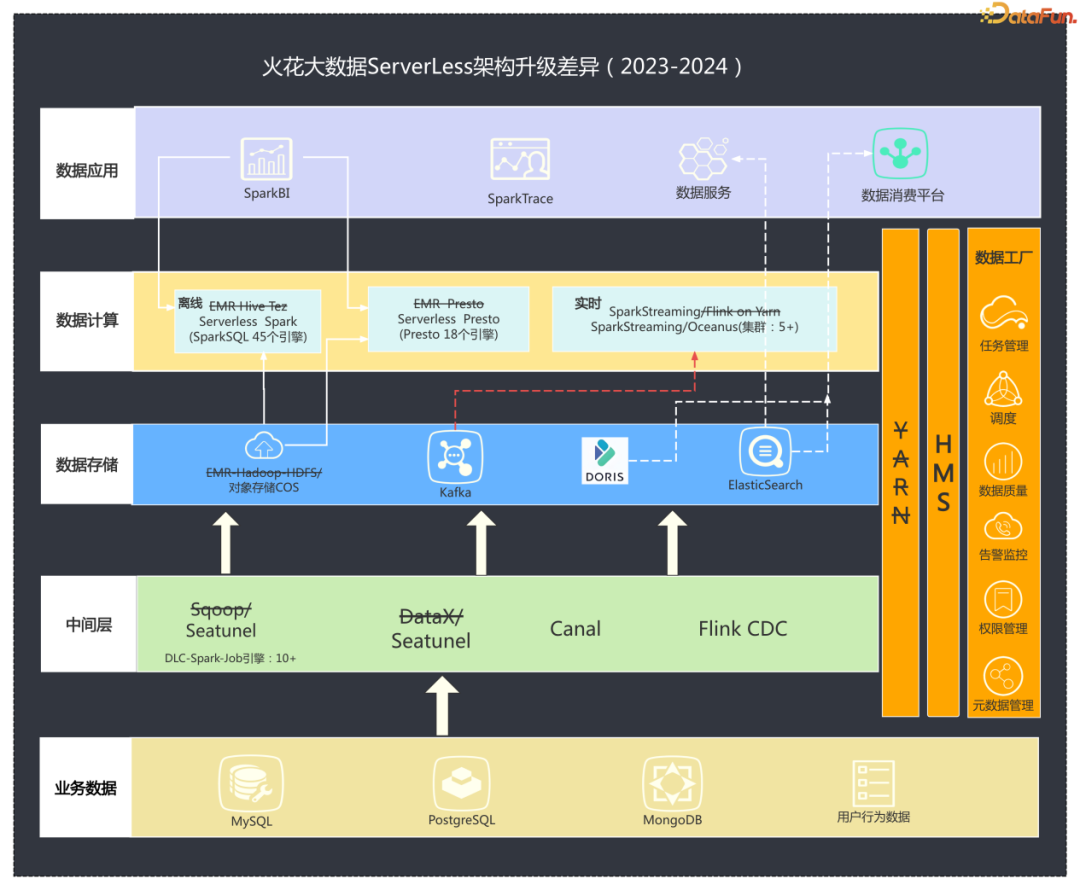 在确定这一整体思路后,我们首先制定了整体升级顺序:计算引擎 Severless 化 -> 存储 Serverless 化->数据集成 Serverless 化,这样由上至下,先改造升级用户体感较强的服务,然后再升级底层服务。同时整个过程通过改造数据工厂使之能够新旧引擎同时双跑,以实现平滑升级改造。2. 计算引擎 Serverless 化