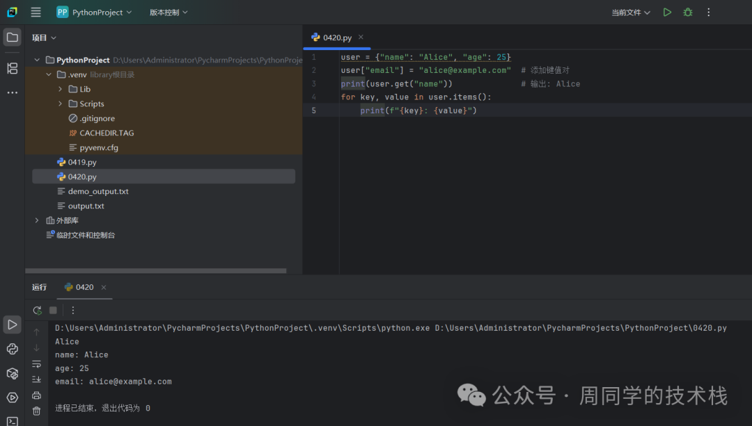 定义,键必须不可变(如字符串、数字、元组)。常用操作:增删键值对、遍历、获取键/值。