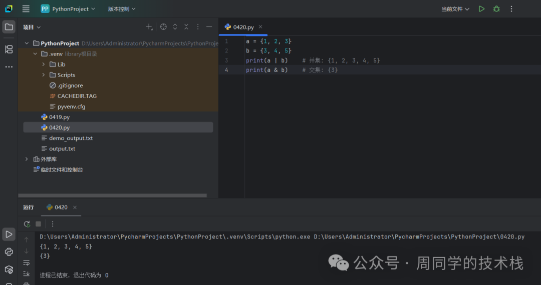 print(a | b) # 并集: {1, 2, 3, 4, 5}