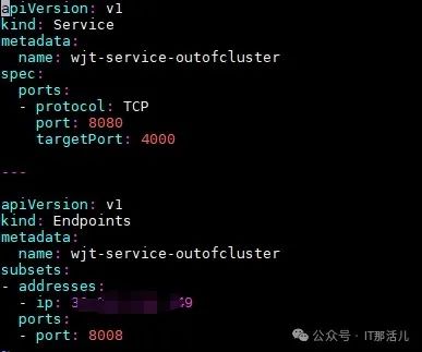 这里不设置 .spec.selector,而是手动创建 endpoints,并指定外部服务的地址。