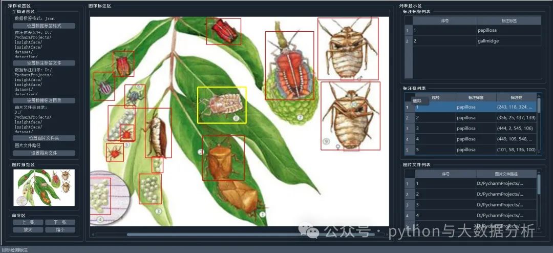 打开标注界面:启动平台后,找到并点击目标检测标注功能入口,进入标注界面。界面主要分为操作设置区、图片预览区、图像标注区和列表显示区。