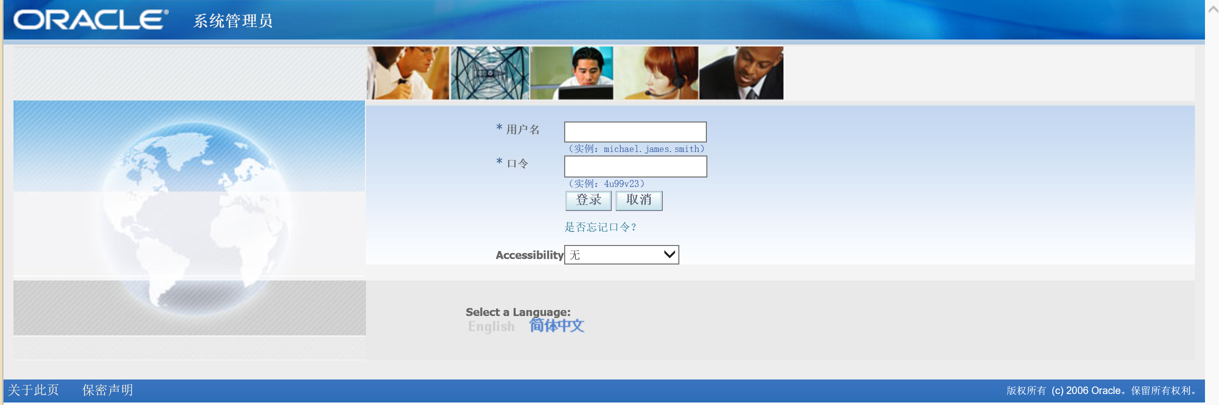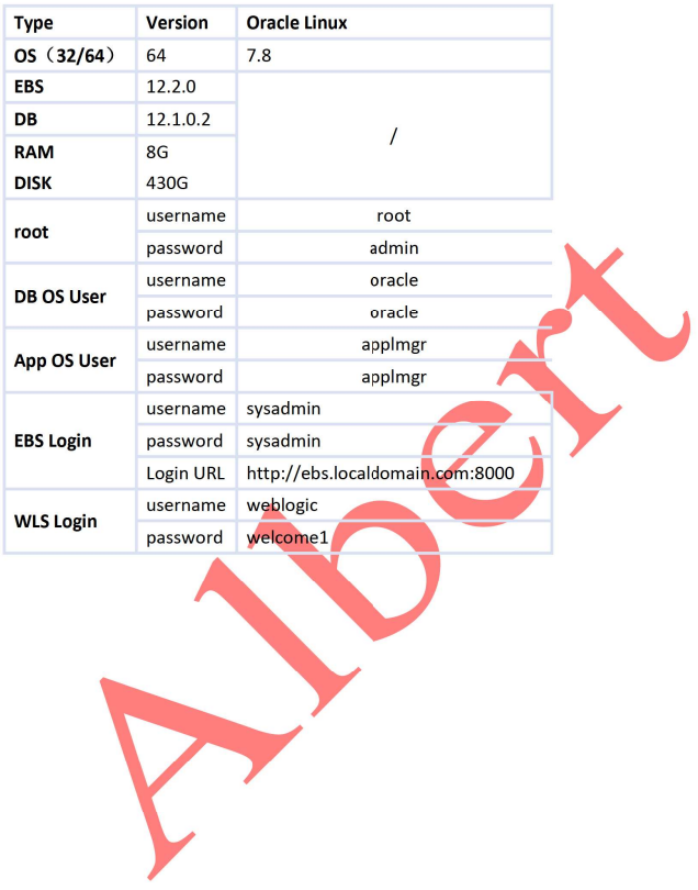 # 应用核心账号账号:apps密码:apps# FMW用户 账号:weblogic 密码:welcome1# 网页登录的超级用户账号:SYSADMIN 密码:SYSADMIN