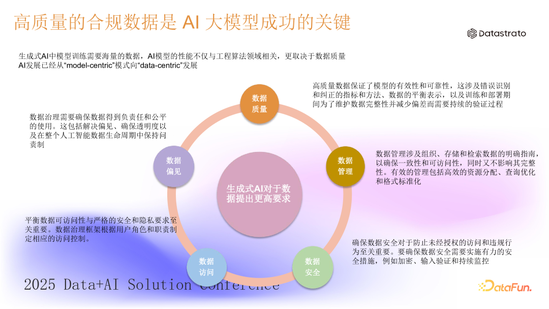 在过去,数据团队主要服务于商业智能(BI)需求,处理结构化数据的 ETL(Extract, Transform, Load)加工和计算。然而,随着 AI 技术的发展,非结构化数据的处理需求显著增加。非结构化数据具有结构多样性、数据量大和复杂性高等特点,其处理和管理的难度远高于结构化数据。同时,为了满足合规性、数据安全和隐私保护的要求,非结构化数据和结构化数据一样,都需要得到有效的治理,这已成为企业的刚需。2. 高质量的合规数据是 AI 大模型成功的关键