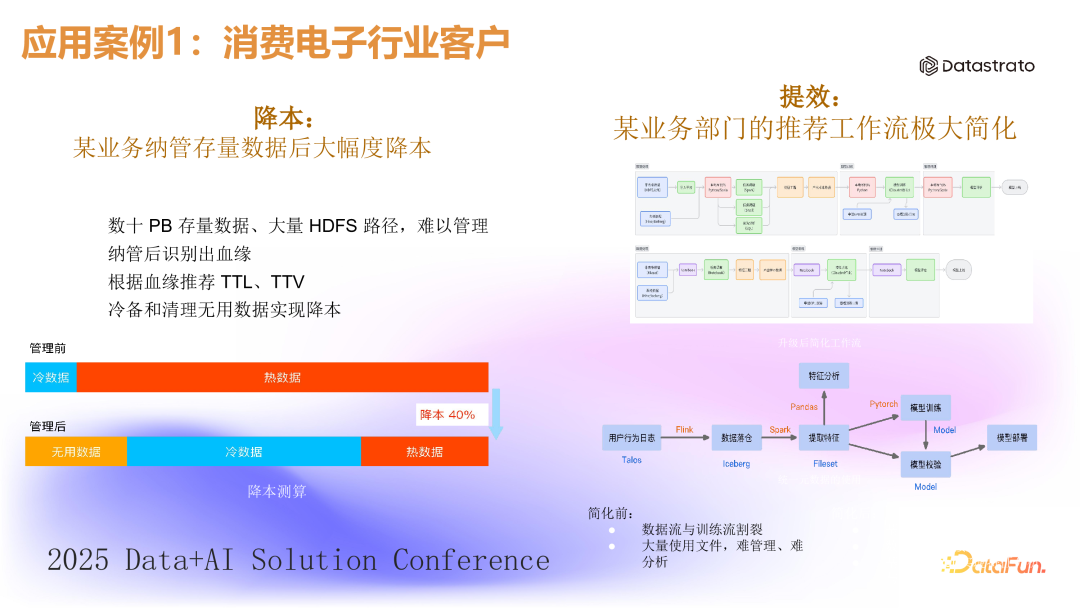 - 实现了 40% 的成本降低,主要通过在元数据访问层面发现并迁移冷数据和清理过期数据实现。