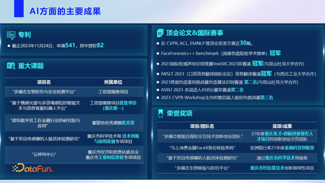 AI 成果主要来自马上消费的人工智能研究院,近两年发表顶会论文近 30 篇,并多次在国内外顶级赛事中获得奖项。