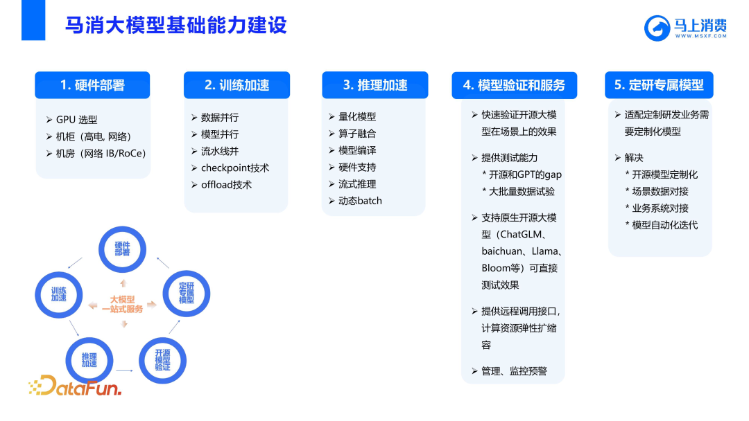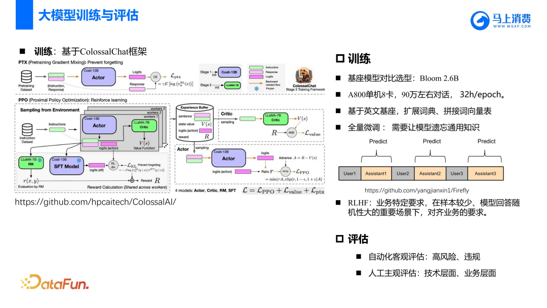 因为模型比较多,涉及到开源选型问题,所以马消内部搭建了一套模型训练、推理和部署的平台与框架,很多环节可以自动化或半自动化地完成,目标是能快速验证一些开源大模型。