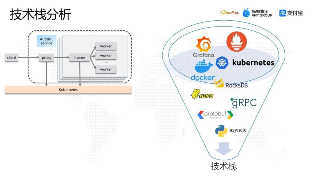 首先从一个实例开始,上图是我们最近构建的AutoML的例子,搭建自动分布式机器学习的服务。