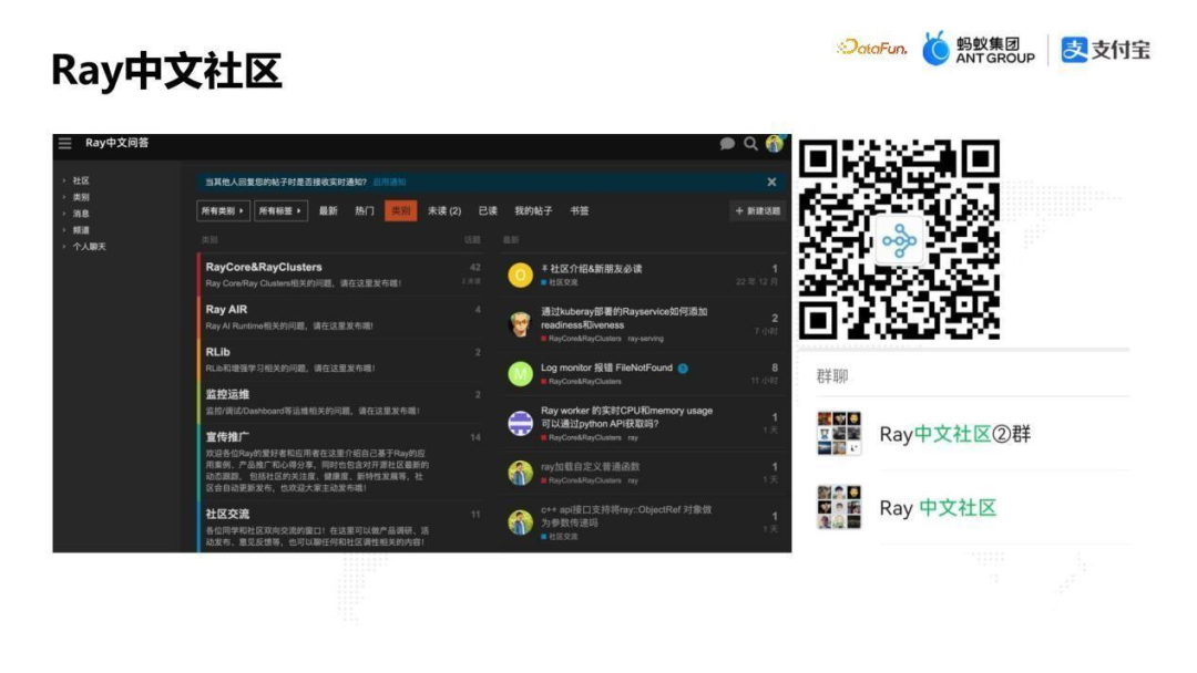 中文社区的交流群可以方便大家围绕Ray系统上的应用进行沟通。