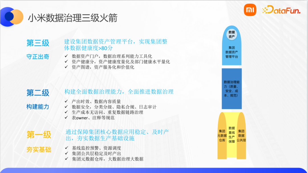 基于以上的数据现状,数据治理团队制定了一个三级火箭方案: