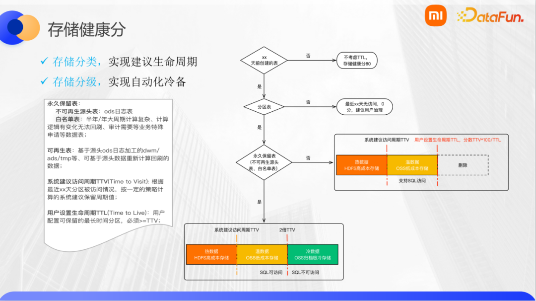 当然,如上图所示,除了分数管理,我们对存储上也做了一个热、温、冷的分级数据存储管理,来节省存储成本。