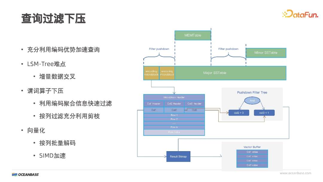 此外,OLAP引擎经常采用的策略在OceanBase的存储引擎中得到了充分的体现。这也是因为OceanBase的存储引擎既满足了TP高并发低延迟的要求,又能够在大规模数据处理时充分利用列存的优势。因此, OceanBase是TP和AP存储引擎的完美结合。