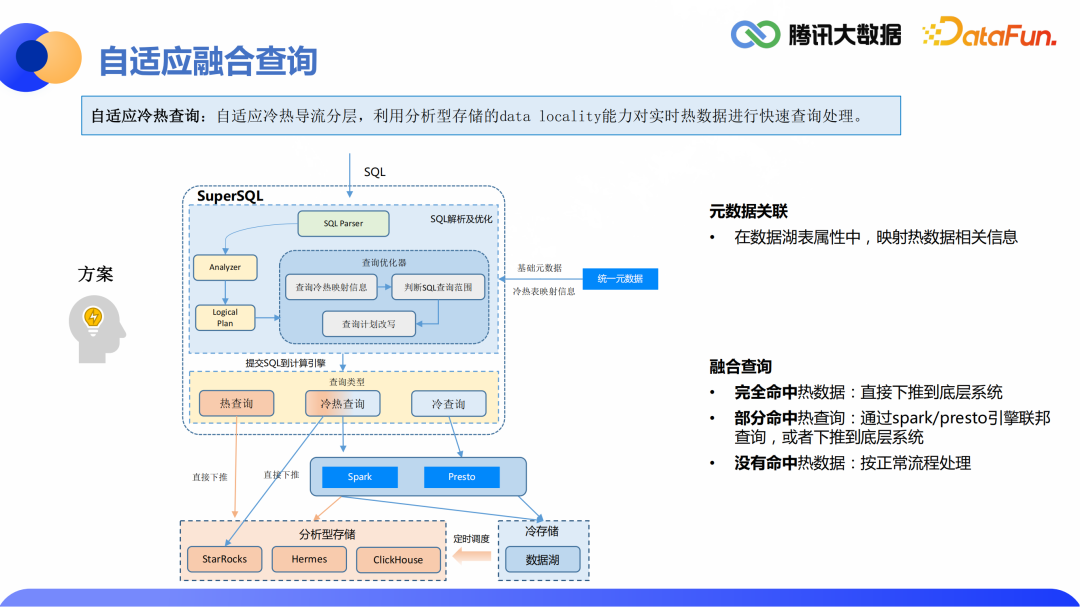 依托腾讯大数据生态,持续完善自适应能力,从而打造完整的大数据极速查询解决方案 实现三网合一的云原生化,解决大型复杂查询的等待痛点 持续探索技术先进性,构建高性能的融合分布式计算框架,实现引擎层的闭环统一管理