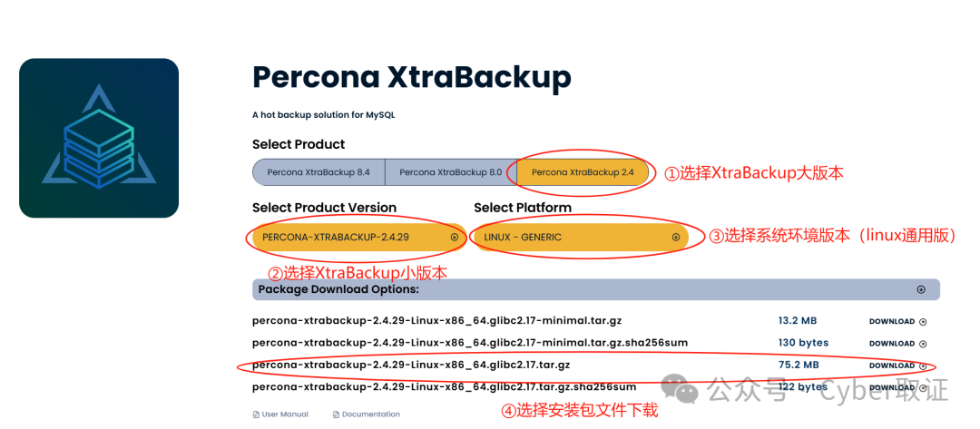 wget https://downloads.percona.com/downloads/Percona-XtraBackup-2.4/Percona-XtraBackup-2.4.29/binary/tarball/percona-xtrabackup-2.4.29-Linux-x86_64.glibc2.17.tar.gz