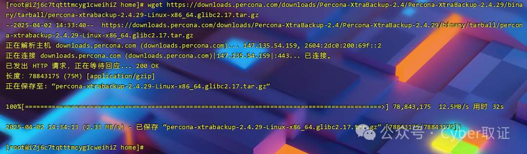 2)下载匹配的XtraBackup:复制上述版本下载链接,然后通过wget命令进行下载;