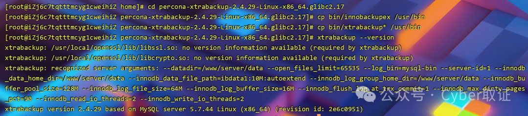 cd percona-xtrabackup-2.4.29-Linux-x86_64.glibc2.17cp bin/innobackupex usr/bincp bin/xtrabackup* usr/bin