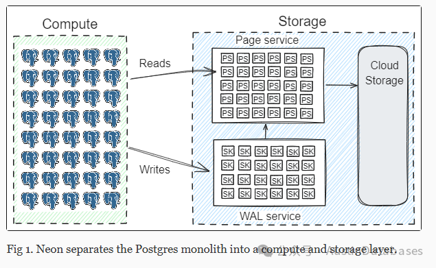 Neon 是一个基于类似 Amazon Aurora 架构的无服务器 Postgres 服务。它也将 Postgres 分解为分离的存储和计算层。其架构背后的动机有四个:
