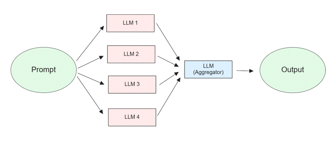 LLM 排序器:此方法使用多个 LLM 作为提议者,独立生成回复。然后由一个独立的 LLM 从这些回复中选择最佳回复。