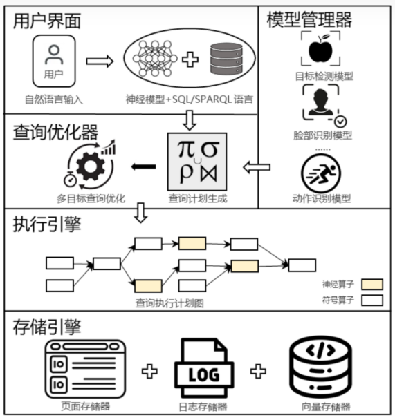 nsDB利用强大的神经操作能力来处理各种模态的非结构化数据,如图像,视频,文本和音频。因此,第一个关键挑战是:如何构建合适的模型管理器?因为它在处理多模态数据的复杂查询中起着至关重要的作用。