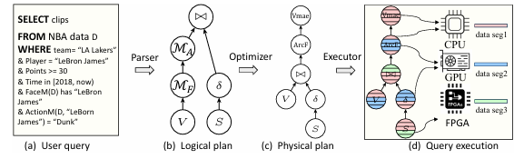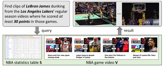 神经系统和符号系统在各个领域出现了许多应用,但无论是基于符号的数据管理系统还是基于神经的人工智能系统,都无法独立有效地处理这些应用。比如,当一个数据分析师想要通过查询数据库中查找运动员投篮视频片段作为营销任务,他需要制定一个查询问题,通过基于符号的数据库或者基于神经的AI系统来回答这个问题。但是这个回答并不容易,以为包含两个基本任务:从视频数据库中识别特定帧,即运动员正在扣篮的帧;以及在具有属性约束的大型视频数据库中找到所有这些帧,例如,在比赛中该运动员得到至少30分。