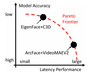 考虑到上述多目标优化问题,nsDB中的查询优化器通过高效准确地导出底层优化问题的Pareto边界来解决该问题。Pareto边界表示理论上的最佳性能。它可以用于指导底层AI模型的选择和物理执行计划的生成。如图显示了对于用户查询的一个Pareto边界。
