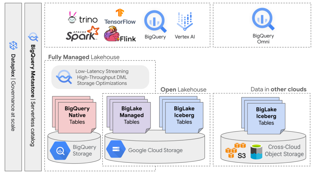 增强托管与互操作性:BigLake托管表(BLMTs)支持ACID事务,在客户对象存储上以Apache Iceberg格式提供完全托管功能,包括自动的存储优化操作,且元数据由Big Metadata管理,安全性高。这些创新最终为客户启用了新的工作负载,我们希望这将在大规模数据分析领域带来更多创新。