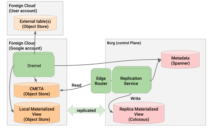 随着BigQuery的发布,Dremel的分析能力通过外部表扩展到查询谷歌云存储(GCS)上的Parquet、Avro和ORC等开源存储格式。在这种模式下,BigQuery云对象存储上的文件仅支持只读访问,不支持基本查询优化、数据修改,也不支持安全和治理等核心企业功能