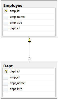 那么如何解决传递依赖问题,其实非常简单,我们只需要将dept_name,dept_info这连个属性删除就可以了,即Employee(emp_id,emp_name,emp_age,dept_id),然后再创建一个部门表Dept(dept_id,dept_name,dept_info)。