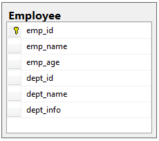 每一个员工都有一个所属部门,假如有一个员工信息表Employee(emp_id,emp_name,emp_age,dept_id,dept_name,dept_info)。