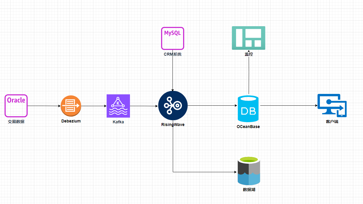 交易系统库,使用Oracle数据库,也是数据库的源头,储存了客户的交易信息、账面资金以及持仓情况。通过debezium与kafka推送至RisingWave。