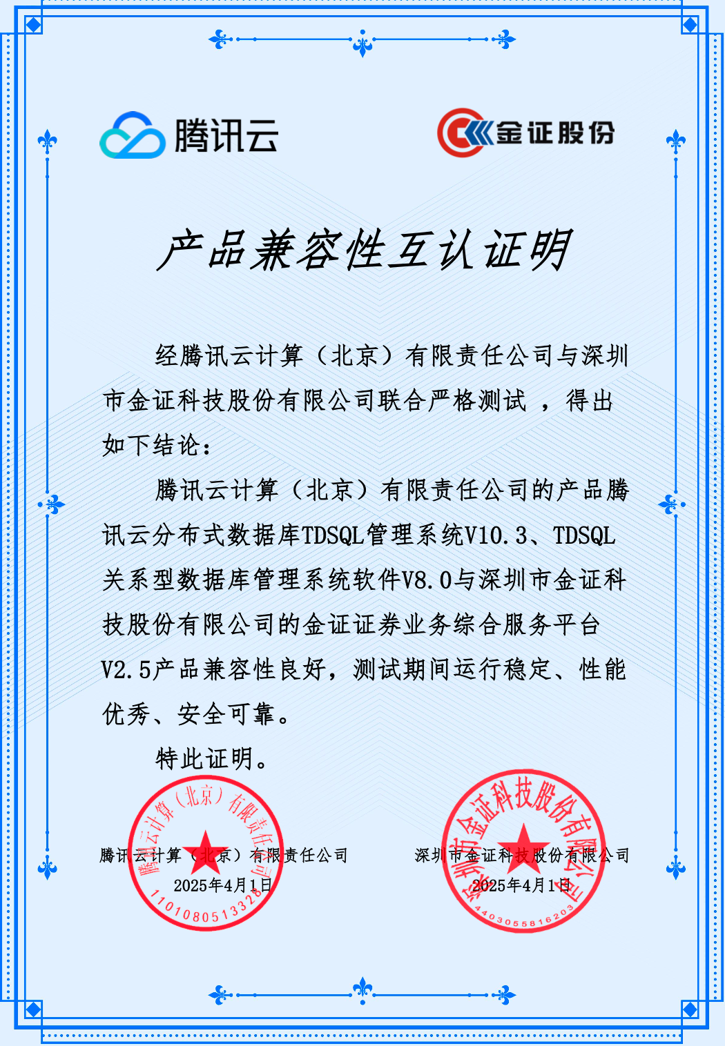 金证多产品 与 腾讯云TDSQL 深度测试认证