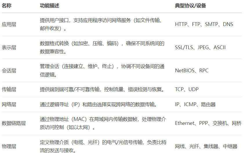 OSI七层网络模型是一种理论框架,核心是分层解耦,将网络自底向上分为物理层、数据链路层、网络层、传输层、会话层、表示层和应用层。