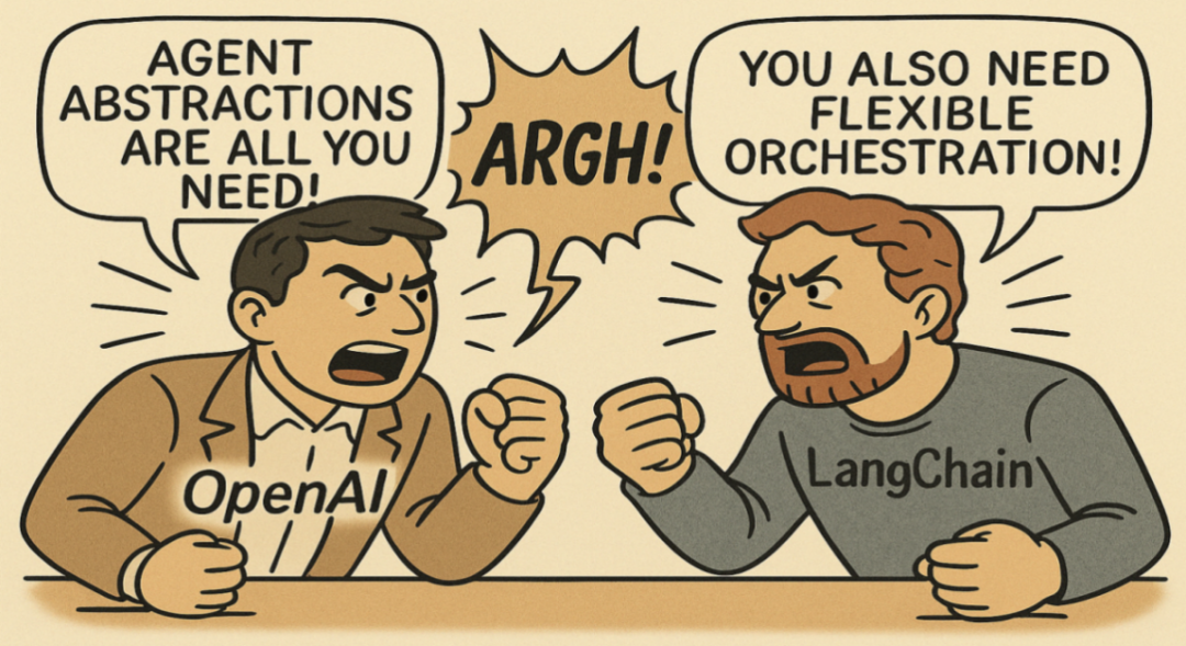 很多人觉得LangGraph 像 TensorFlow(一个声明式深度学习框架),而像 Agents SDK 则像 PyTorch(命令式深度学习框架)。但这个比喻并不准确。像 Agents SDK(包括早期的 LangChain、CrewAI 等)其实既不是声明式,也不是命令式——只是一些抽象层。
