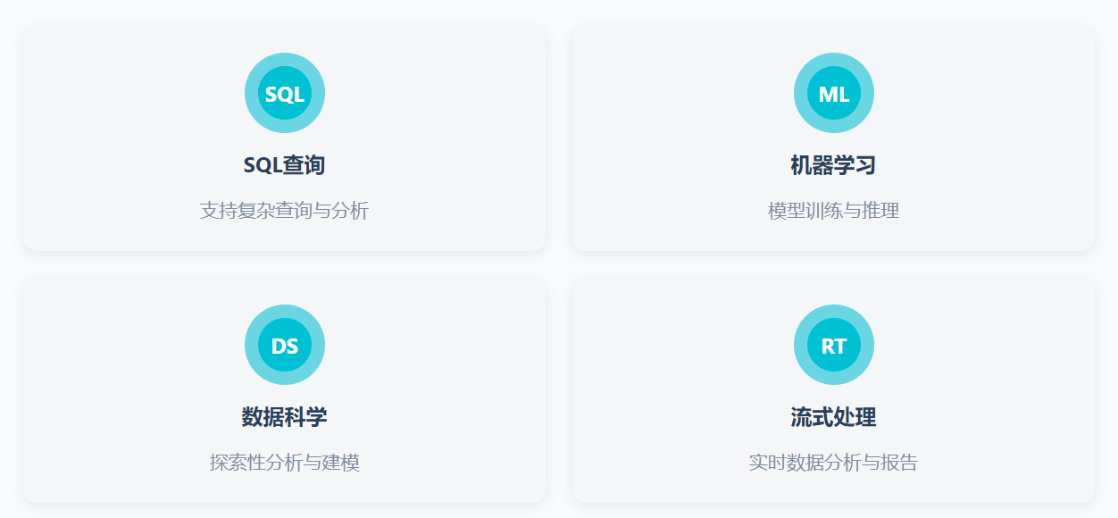 - 支持各种工作负载:包括数据科学、机器学习、SQL 查询、分析等多种计算场景。