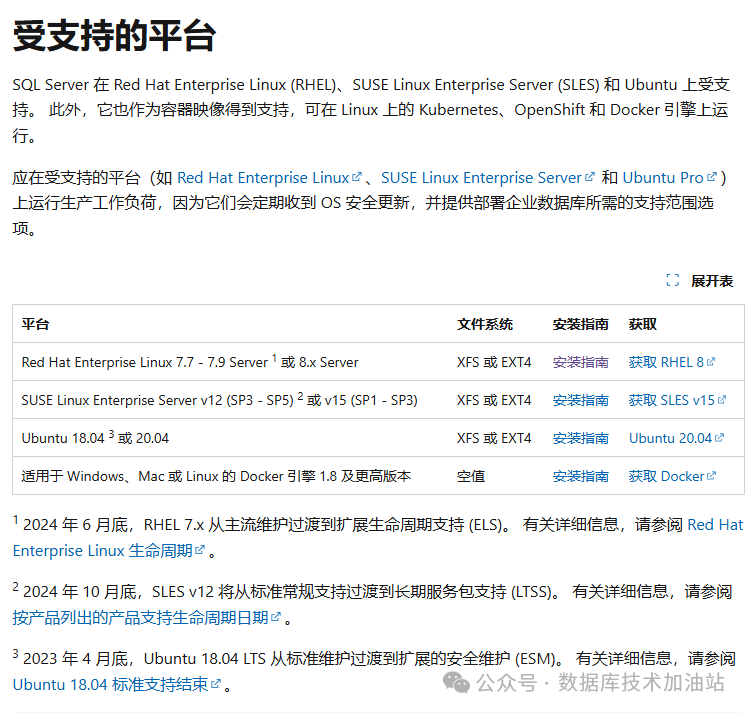 第一、介绍sqlserver支持在linux支持安装的版本信息