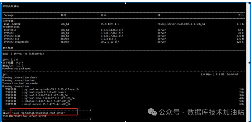 1)yum -y install mssql-server-15.0.4375.4-1.x86_64.rpm ,该步简单理解就是将软件可执行文件生成到/opt/mssql/目录下;然后生成一个自动启动sqlserver的原始服务/usr/lib/systemd/system/mssql-server.service