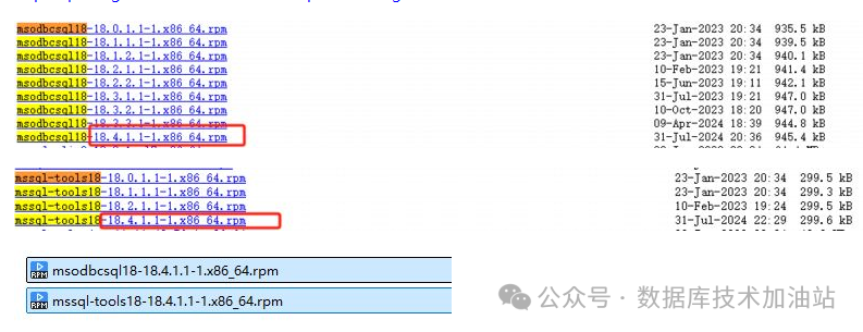 2.此外,找到并复制 msodbcsql18 包,它是一个依赖项。 msodbcsql18 包在 unixODBC-devel 上还有一个依赖项。 对于 Red Hat,msodbcsql18 包位于https://packages.microsoft.com/rhel/8/prod。