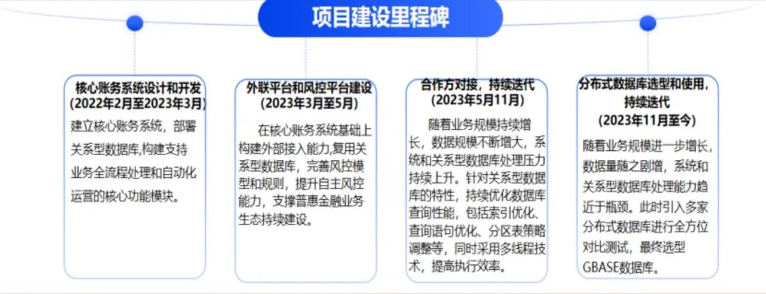 在核心账务系统基础上构建外部接入能力,复用关系型数据库,完善风控模型和规则,提升自主风控能力,支撑普惠金融业务生态持续建设。