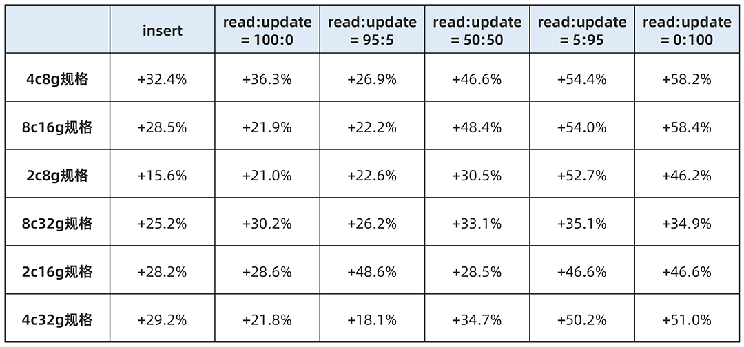 此次8.0版本在读写性能方面带来了尤其大幅的性能提升,将阿里云MongoDB 8.0版本与7.0版本的同规格进行性能对比,可以看到读操作性能较7.0版本提升20%-36%,写操作性能提升35%-58%。通过升级到阿里云MongoDB 8.0版本,业务应用可以响应更快、运行更流畅!