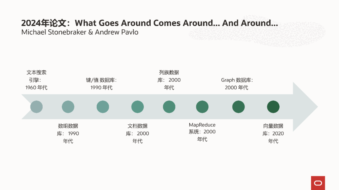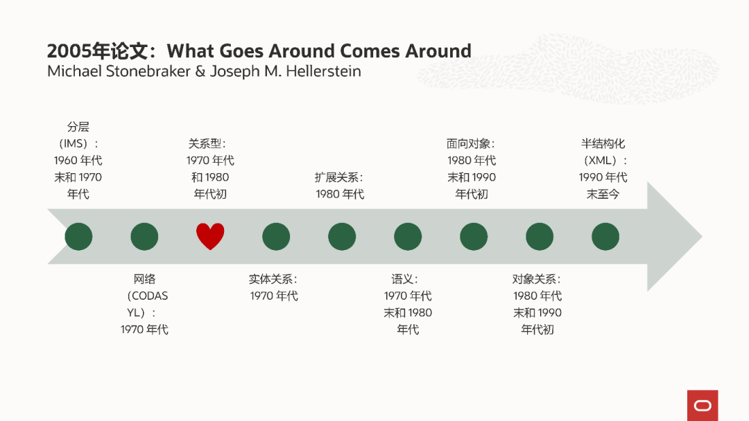 2024年,Stonebraker与Andy Pavlo[iii]联合发表了文章“What Goes Around Comes Around... And Around...”,作为2005年论文的后续,再次对过去20年的数据模型做了回顾和总结。