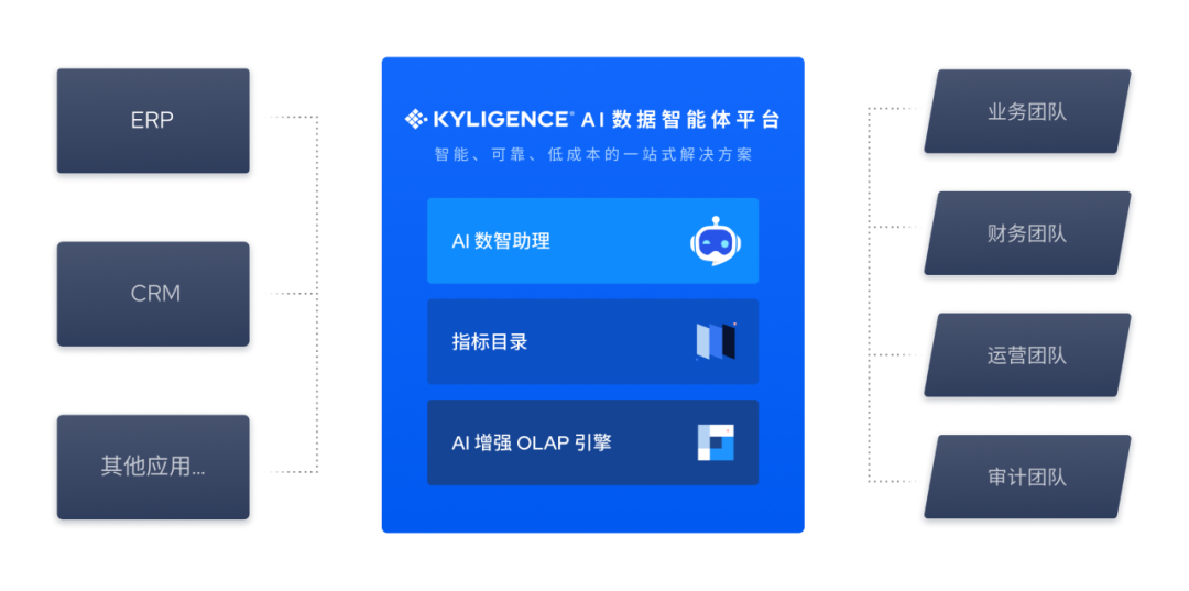 针对这些痛点,Kyligence AI 助力该企业构建起覆盖指标管理、智能问数、深度归因到报告自动生成的一体化能力体系。该体系以“数据即指标,指标即洞察”为核心理念,帮助非技术人员也能高效进行数据分析与决策支持。