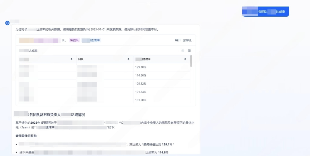 如今,只需输入一句话:“查询团队和销售代表业绩趋势”,系统便能自动联动多系统数据,实时生成可视化图表与结论摘要。
