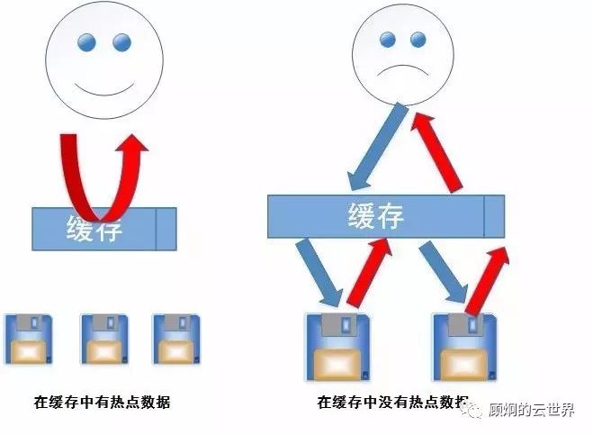 SAN存储主要提供高并发随机小IO的存储能力,这是大部分应用都需要的能力。从表1的“随机读写IOPS性能”比较上看,机械驱动的SAS和SATA盘就明显和SSD不在一个水平线上了。SSD比SATA快1131倍,SAS比SATA快4倍。用SATA、SAS盘作为SAN存储的存储层显然有点吃力了。所以不管是FCSAN还是SRVSAN都会有“缓存”层。FCSAN的缓存一般是用了物理内存,而SRVSAN用了SSD。将经常访问的“热点”数据保留在缓存中,起到“加速”的作用。上面的例子就是因为需要“临时抱佛脚”,所有的数据都要从持久化层的SATA盘中读取,当然存储的性能就很差了。分布式存储的性能需要“热身”才能体现出来。有缓存的和没有缓存慢多少呢?根据上面的数据,至少慢了1000倍,用户的感知当然不太好。