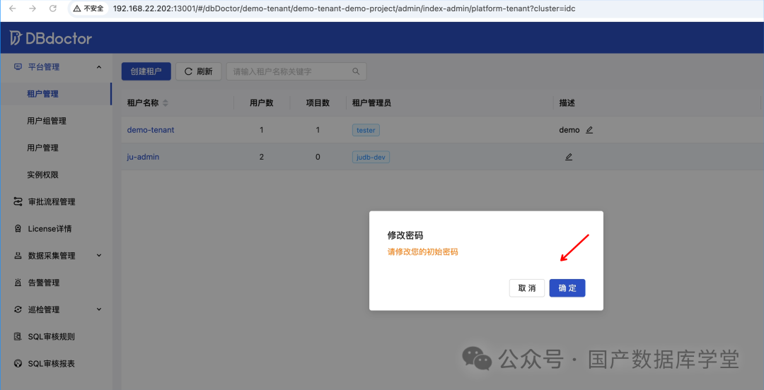 首次提示登录admin 账号后需要修改密码,建议及时进行调整。