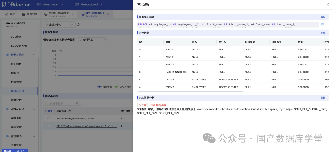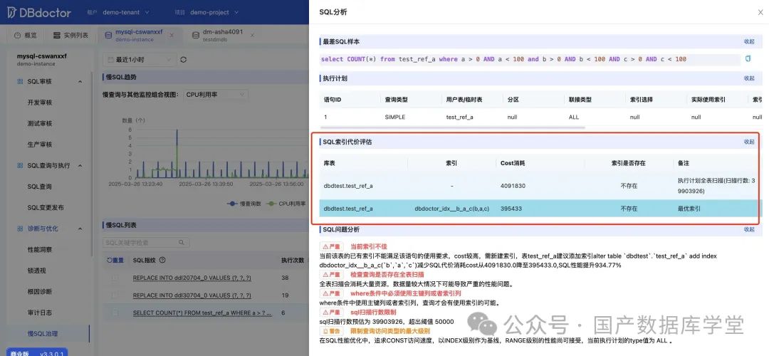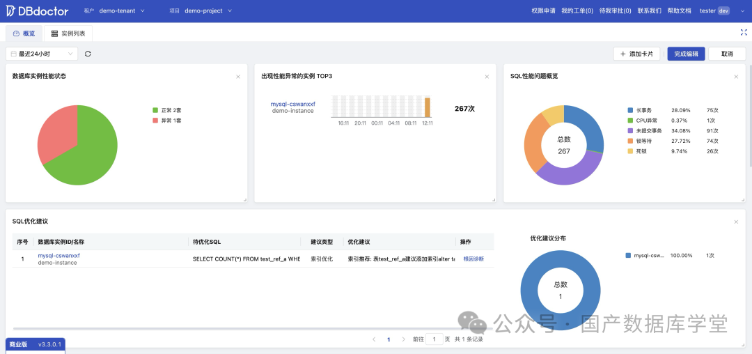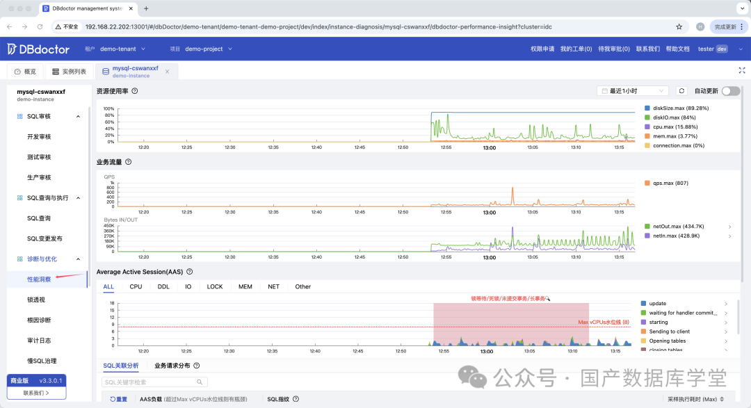 针对这些痛点,为用户提供了便捷高效的解决方案。它可以深入数据库内核,对实时产生的海量数据进行全面且深入的分析,进而为用户提供精准无误的诊断分析结果以及切实可行的优化建议 。