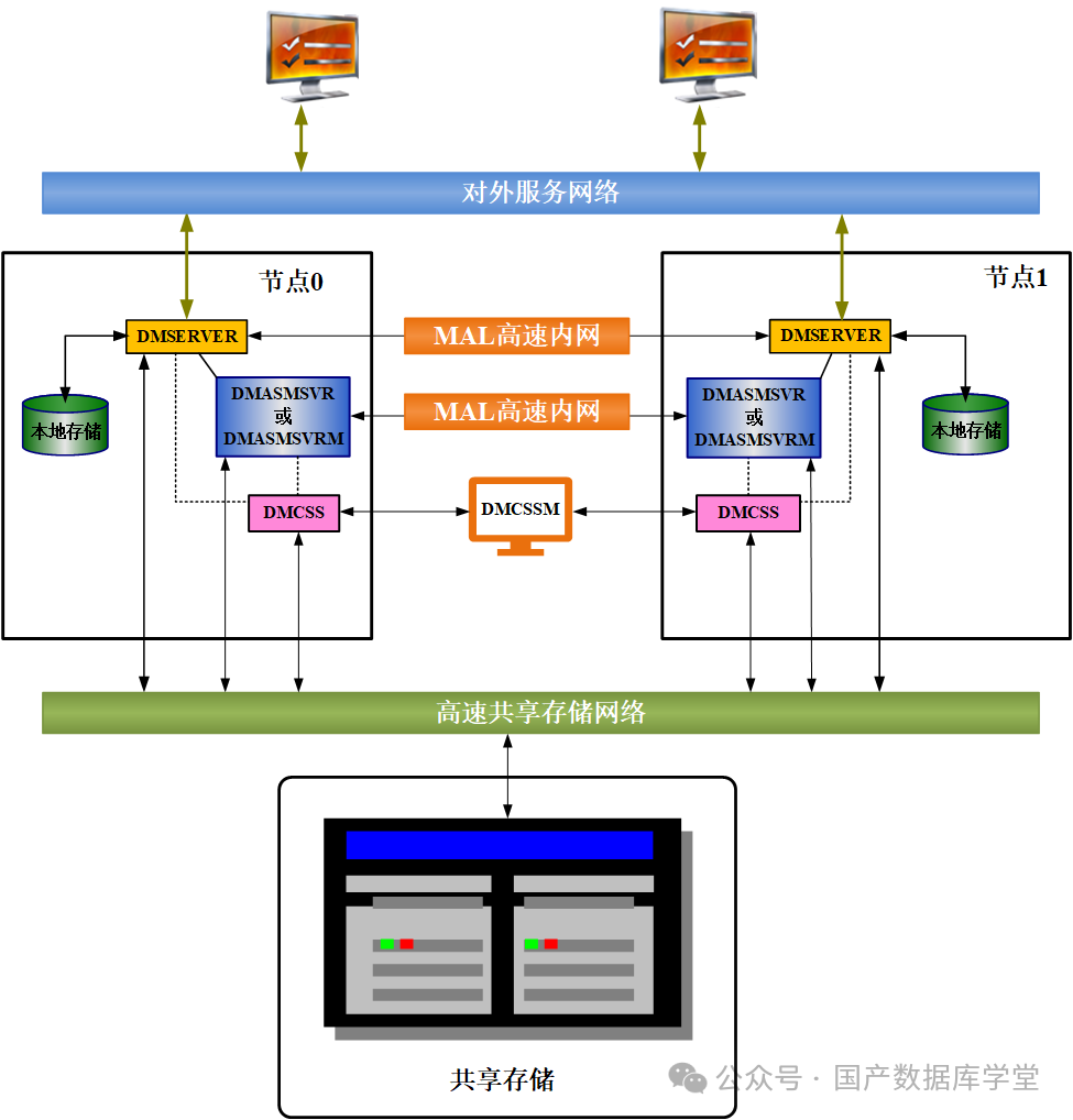 ),是一种基于共享存储架构的高可用数据库集群解决方案。DMDSC