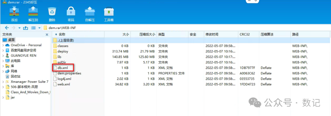 3.1.3.使用压缩工具打开文件,修改db.xml信息