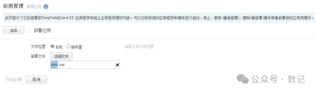注意: dem.war包更新文件时,建议不要直接解压。可以拷贝到本地修改之后上传处理。用java打包时需注意版本。避免部署完成之后,日志无明显错误,控制台也可以正常启停业务,访问DEM