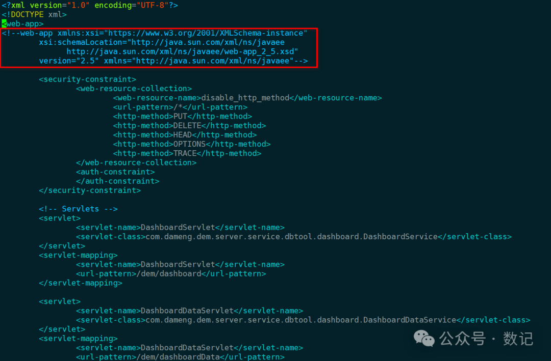 java.lang.IllegalStateException: ContainerBase.addChild: start: com.tongweb.tomee.catalina.TomEERuntimeException: com.tongweb.tongejb.OpenEJBException: Cannot unmarshall the web.xml file: file:/dm/dmback/TongWeb7.0.4.7_Enterprise_Linux/deployment/dem/WEB-INF/web.xml: Unexpected attribute根据提示去DEM目录下对
