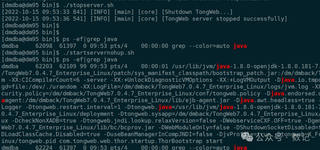 [dmdba@dm95 bin]$ ps -ef|grep java