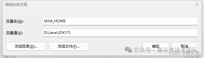 更新JAVA_HOME 「更新Path变量」: 在系统的环境变量中,找到Path变量,确保JDK17的bin目录路径已经加入。如果之前的路径仍是JDK8,需要将其更新为JDK17的路径。